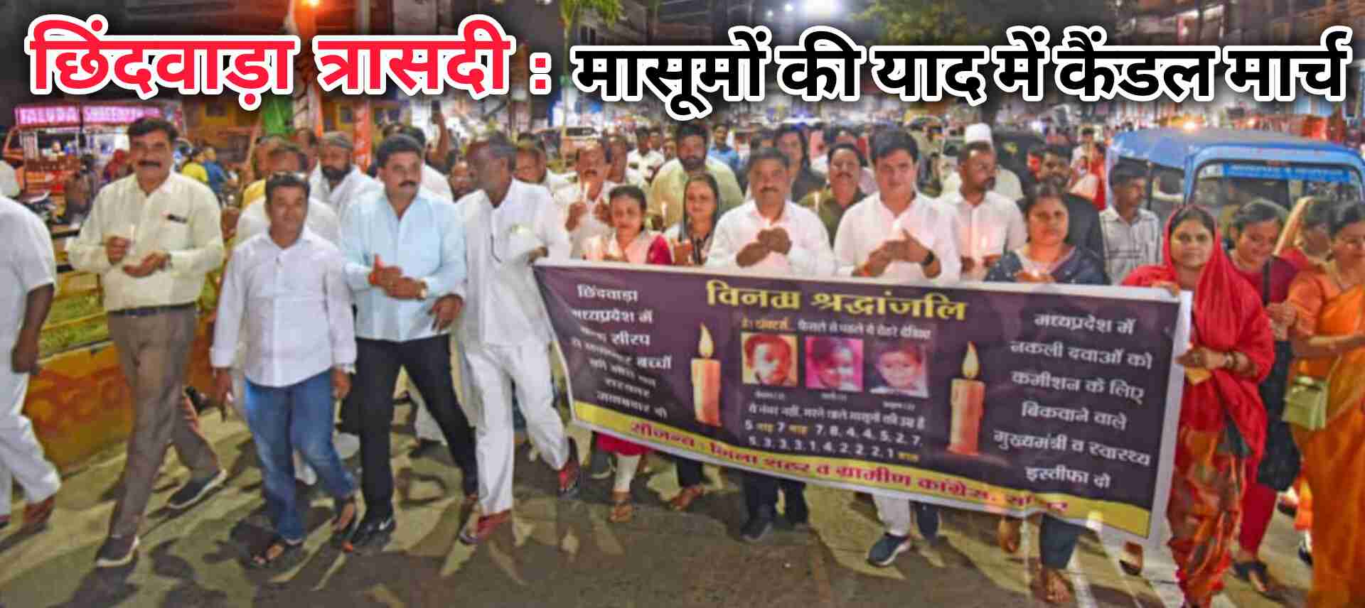 मध्यप्रदेश कांग्रेस कमेटी के अध्यक्ष जीतू पटवारी के निर्देश पर, यह विरोध कार्यक्रम गौर मूर्ति स्थित कांग्रेस कार्यालय से शुरू होकर कटरा जय स्तम्भ तक आक्रोशपूर्ण कैंडल मार्च के रूप में आयोजित किया गया। कांग्रेस कार्यकर्ताओं ने “हत्यारी सरकार” और “संवेदनहीन स्वास्थ्य मंत्री” के खिलाफ जमकर नारेबाजी की। कैंडल मार्च में शामिल सैंकड़ों लोगों ने हाथों में मोमबत्तियाँ लेकर उन मासूमों की आत्मा की शांति के लिए प्रार्थना की, जिनकी जान राज्य की चरमराई हुई स्वास्थ्य व्यवस्था की भेंट चढ़ गई।
