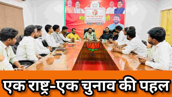 बैठक को संबोधित करते हुए भाजपा जिला अध्यक्ष श्याम तिवारी ने कहा कि अब समय आ गया है जब लोकतंत्र को अनावश्यक खर्च, बार-बार होने वाले चुनाव और राजनैतिक अस्थिरता की बेड़ियों से मुक्त किया जाए। आर्थिक नीतियों में निरन्तरता, व्यापार और रोजगार को गति देने के लिए एक देश-एक चुनाव समय की मांग है। उन्होंने कहा कि एक राष्ट्र-एक चुनाव के लिए लोकमत तैयार करना है ताकि भारत को वैभवशाली और विकसित राष्ट्र बनाने की इस मुहिम में जनता की सक्रिय भागीदारी सुनिश्चित हो।