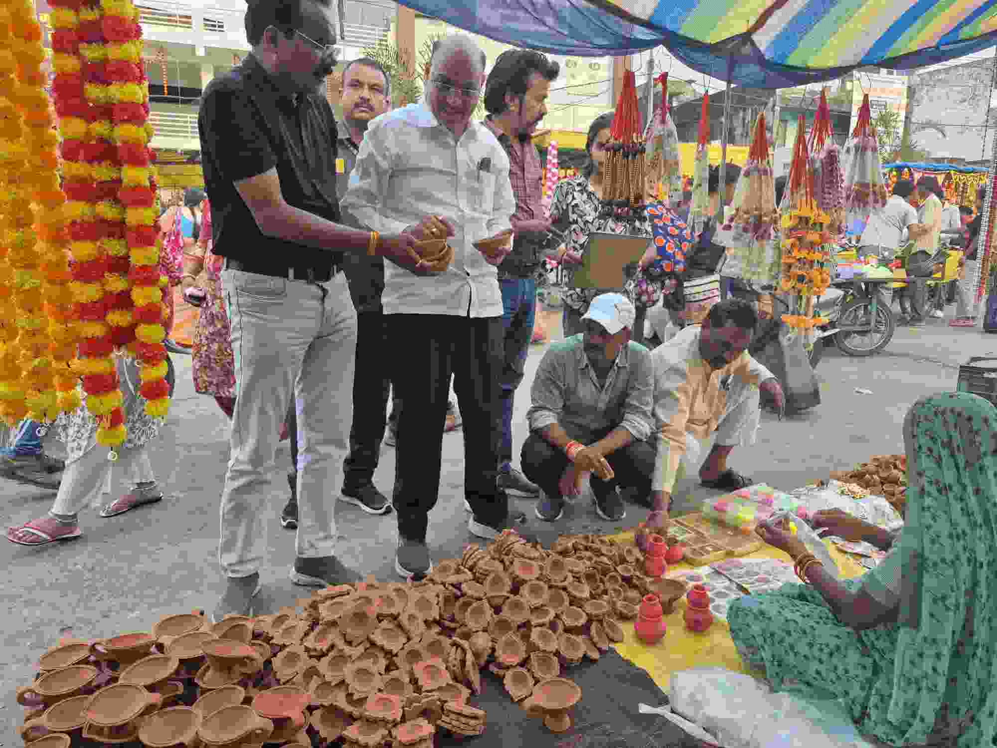 नरयावली विधायक इंजी.प्रदीप लारिया ने मकरोनिया के रजाखेड़ी बजरिया में दीपावली के लिए स्थानीय बाजार से कुम्हारों द्वारा बनाए गए स्वदेशी दीयों और सजावटी सामग्री की खरीदारी की। इस अवसर पर उन्होंने क्षेत्रवासियों से अपील की कि वे दीपावली पर अपने घर में स्वदेशी दीप जलाएं।