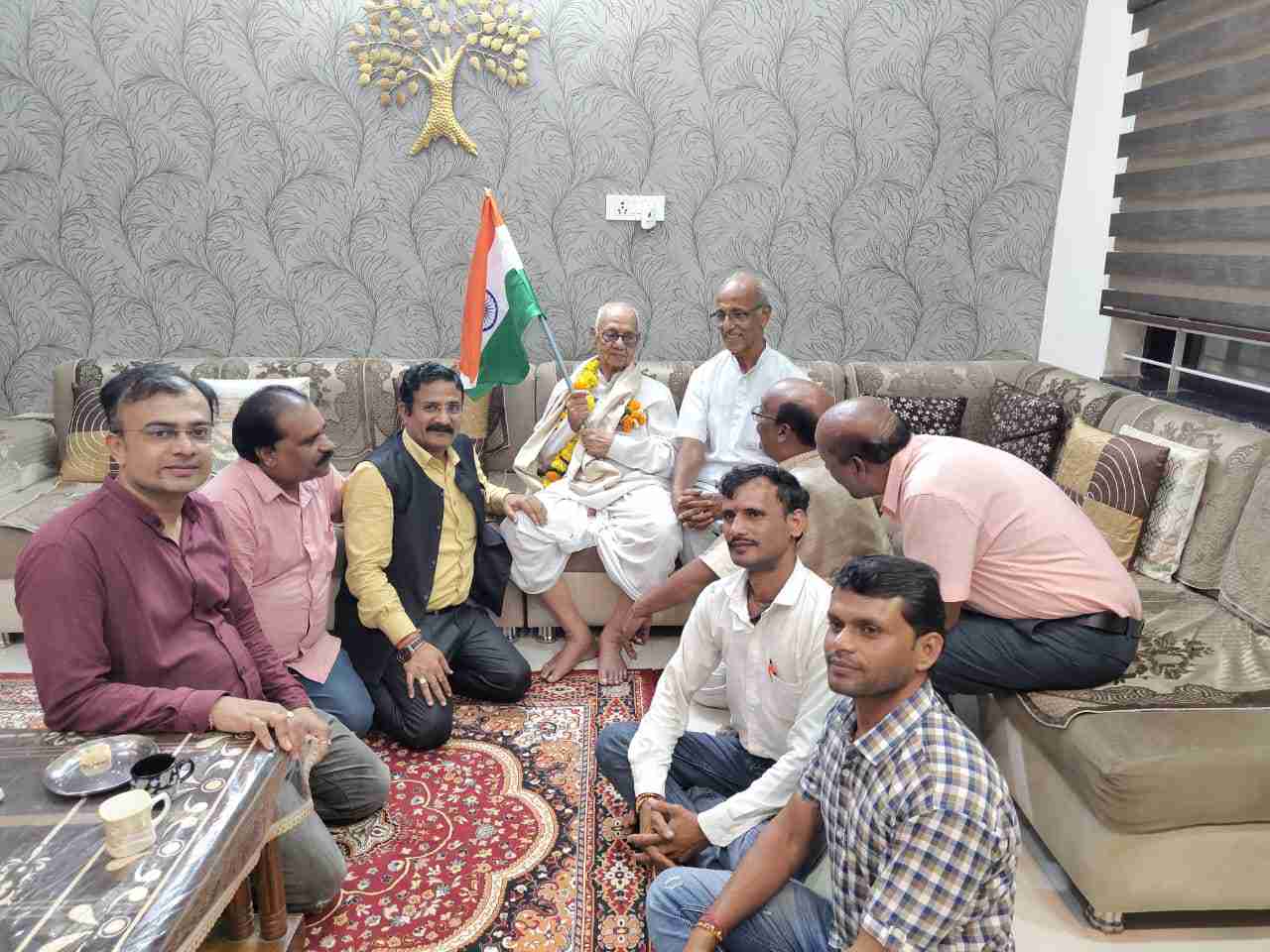 देश के 79वें स्वतंत्रता दिवस की पूर्व संध्या पर सागर के स्वतंत्रता संग्राम में 15 वर्ष की उम्र में गाॅंधी जी के असहयोग आंदोलन में शामिल व 6 माह जेल में रहने वाले सेनानी श्री तारा चंद जैन का उनके पंत नगर सागर स्थित सेनानी निवास पर पहुॅंचकर भाजपा के वरिष्ठ नेता डाॅ. अनिल तिवारी द्वारा राष्ट्रीय ध्वज तिरंगा, पुष्पमाला व शाॅल श्रीफल से सम्मान किया गया।
